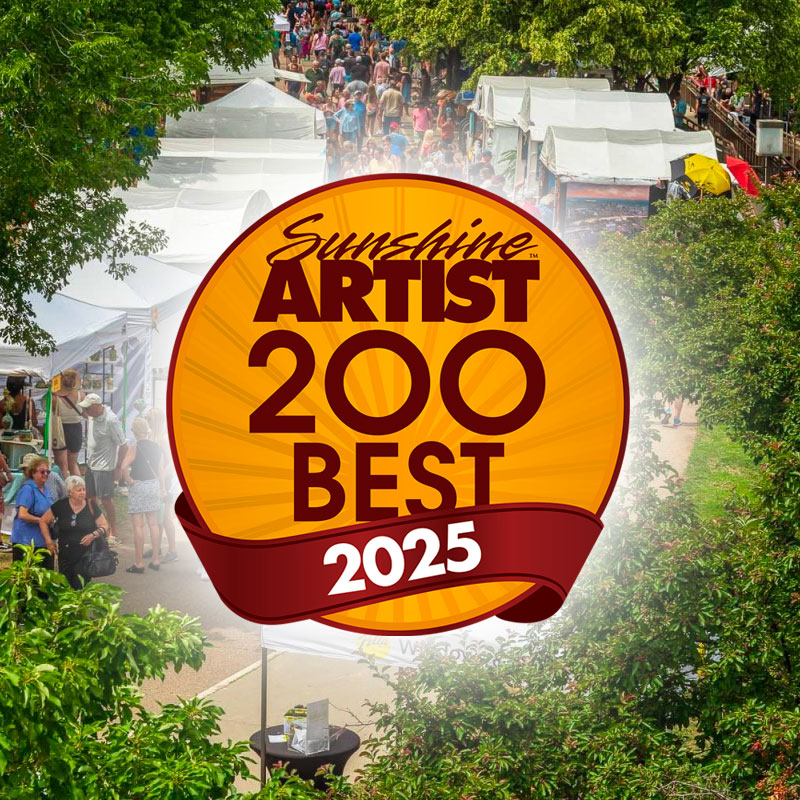 The festival hosts 200+ top artists from across the US. Categories include photography, painting, jewelry, sculpture, woodworking, ceramics, printmaking, glass, and fine crafts.
